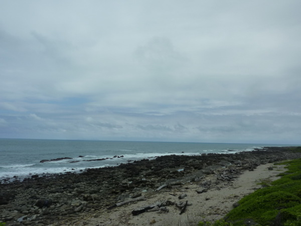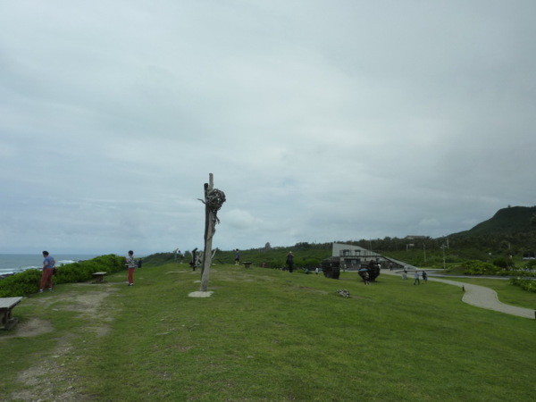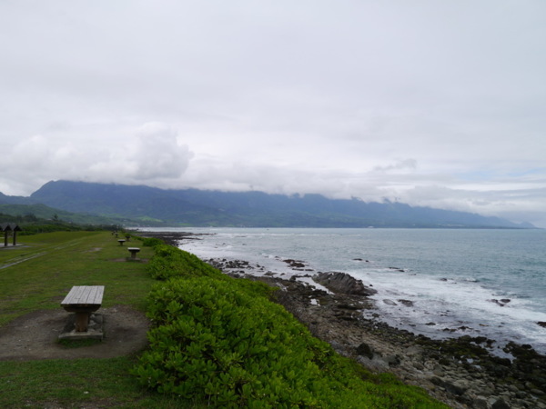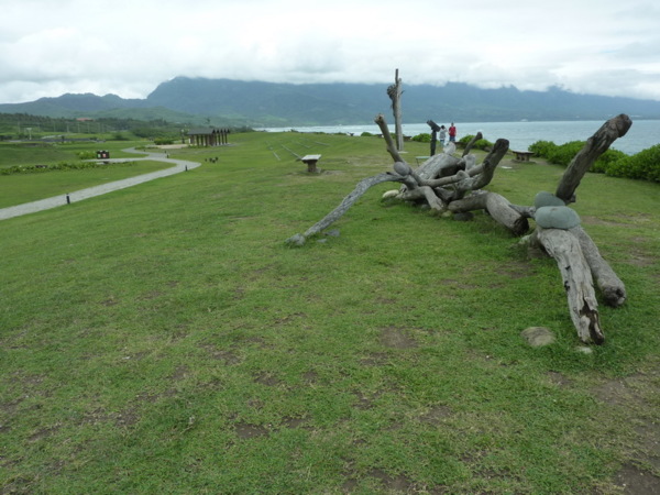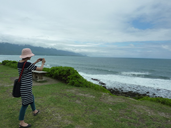 隔了半天,我們還是停下來了,這個以寬闊的都蘭灣為背景的遊憩區,讓老媽難得地主動拿出相機拍照,雨絲停了,天空還短暫地破出藍天,甚至連綠島也隱約可見,更方便我們欣賞海景及抓取畫面。