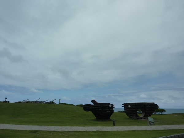 其實咱們母子倆看不出來啥叫做地層翻轉,也不明瞭這些漂流木創作的意義,可是很清楚的是,眼前這片海灣已經足夠,海風蠻大的,也吹來海洋的味道;老媽說,范老師(同事)要她拍一張「一看就是海」的照片,這兒應該可以拍到了吧?