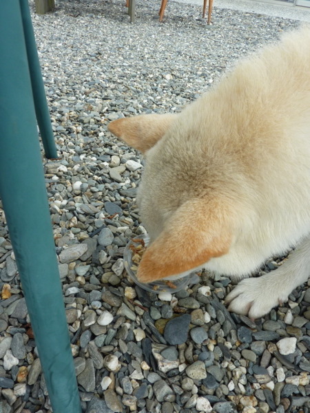 我給白寶挖了將近四分之一碗的魯肉飯,還把比較大塊的肉絲盡量挑給牠,這隻機伶的柴犬樂不可支。(笑)