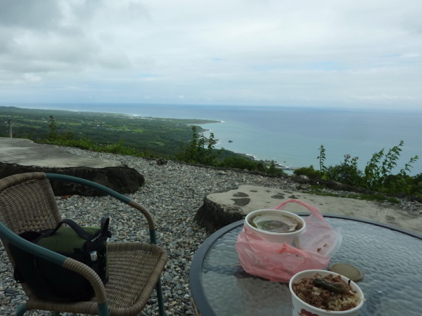 話雖如此,其實主人有沒有在民宿裡不是什麼問題,老媽吃了點東西,在房間吹涼看書休息,樂得輕鬆,我則端起剛在市區買的魯肉飯和魷魚羹走到前院來,現下沒有太陽也未飄雨,是悠閒吃飯賞景的好時機。