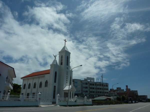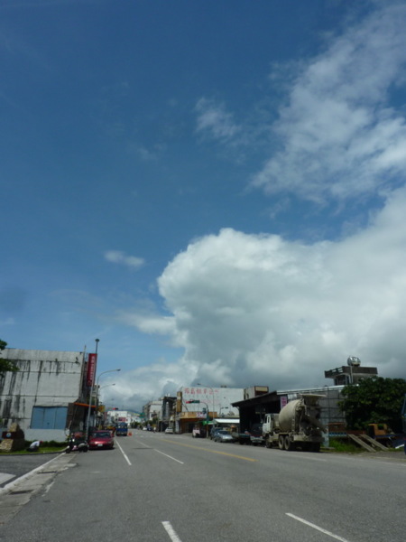 果不其然,當我們從五權路右轉中山路沒幾公尺,成功鎮公所赫然出現在我們右手邊,或許是老天爺覺得這兩個外地人傻勁傻勁的,所以,當我們抵達鎮公所前,天空之藍大出我的意料,我趕忙跳下車拍了照片,心滿意足。