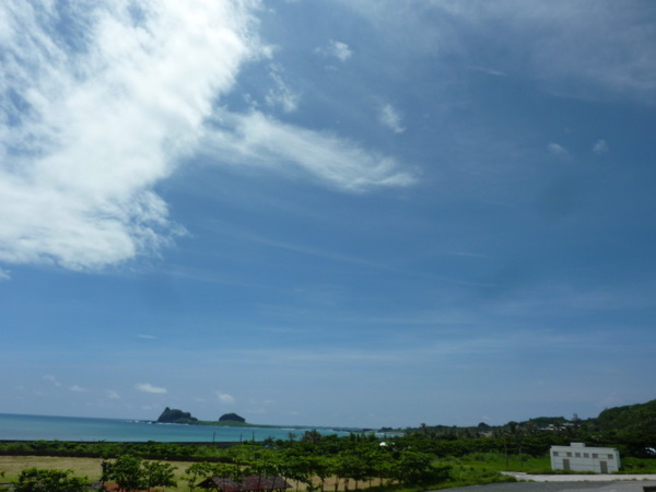 說實在的,我本來興沖沖地想去三仙台走走,但真沒想到台東的太陽果如「私房民宿」翠娟大姊說的是「太陽之鄉」,才十點半,陽光已經把大地曝曬得厲害,搖下車窗就能感到滿滿熱浪襲來的FU,那種FU讓我不想下車,而且三仙台入場需要收門票,加上看到停車場已經有幾輛遊覽車停放,想必走拱橋過去會碰到一堆遊客,種種原因,我當下打了退堂鼓。