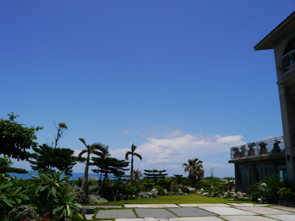 只是必須扣掉過度樂觀的好天氣,如我們抵達的正午,那不是適合來到此地的時刻,石梯坪主打海岸風光,頂著豔陽到海邊走走,恐怕沒多久就曬傷中暑了,所以,我和老媽並未到海邊去,來到這兒僅在「石梯緣」門口一晃,留下腳印和照片隨即返回車上,繼續往北。
