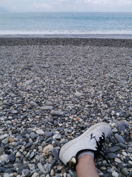 來到七星潭已經是午茶時間,可惜我們沒帶點心入場,但坐在岸邊吹海風、聽浪濤,霎時快意非常。