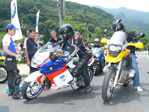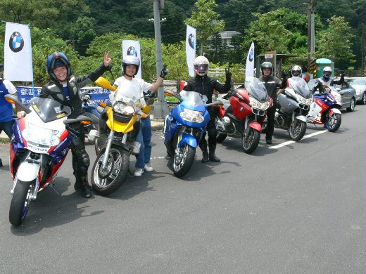 此次試車,BMW可說是精銳盡出,有K-1200S跑車、K-1200R街車、R-1200GS越野車與兩輛俗稱「大鳥」的R-1200RT。現場還有許多BMW車主來助陣,連128萬元的大休旅K-1200LT都來了好幾輛,還有一輛1977年出廠R-1000RT老爺車,引起車友們的圍觀。
