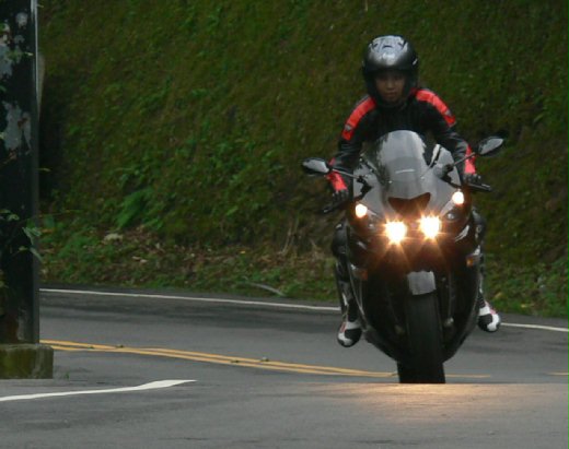 我們選了一天,向Kawasaki借ZX-14,這輛車的外號叫「直線加速之王」,1400cc引擎,擁有200匹大馬力,這簡直就是頭巨獸,不過阿君騎得還真不錯,經過簡單的講解,就立刻能夠上手,在五指山多變的山路上,ZX-14表現穩紮穩打,每個彎都過得十分順暢。