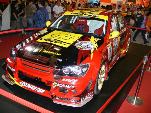 現在谷口信輝是日本家喻戶曉的甩尾賽車手,他的座車這次也運到台灣來展示,那原本是TOYOTA Supra房車,HKS團隊的技師將這輛車徹底改裝,將原本只有2000cc、180匹馬力的引擎換掉,改用3400cc、500匹馬力的2JZ-GTE引擎,整輛車全部換裝,花了2000萬日幣。