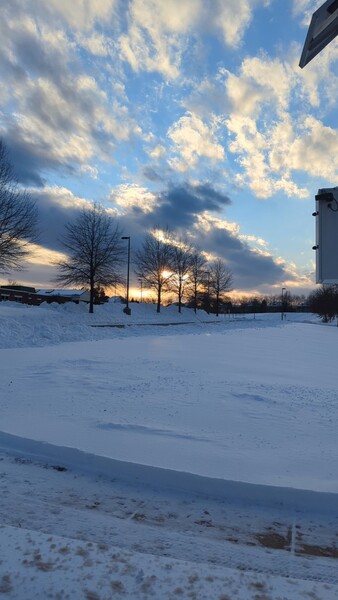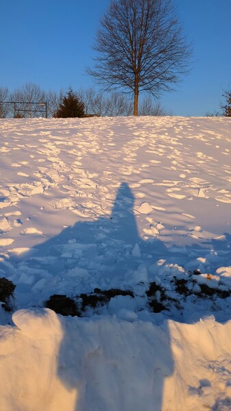 我家對面的雪山,小爬一下 小朋友都是拿來滑雪橇用的, 利用早上人少時來, 現在都結冰了! 今天星期四老三繼續放雪假! 爬上來的景色蠻美 日出 小狗的脚印好可愛😍😍😍 送您黃金萬兩😁😁😁 影...