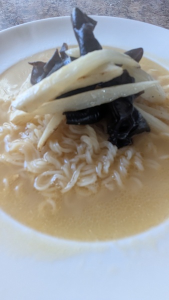 木耳筊白筍配台灣來的麻油雞絲麵😁😁😁 今天繼續放雪假,No school 公立學校、圖書館没開 要開也可以~車開不出去,我走也走不過去 主要幹線還ok 但小幹線還是結冰 今天氣溫8度F(零下好...