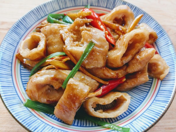 起鍋前放入剩餘薑絲,葱絲和辣椒絲,