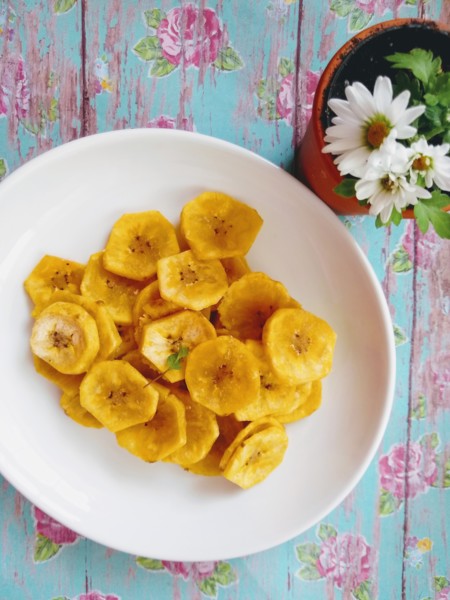 芭蕉放在烤盤上,沾油沾滿沾足,