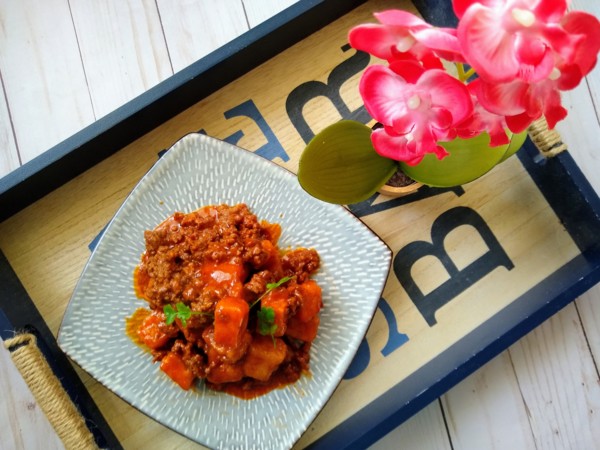Korean crispy tofu with ground beef.