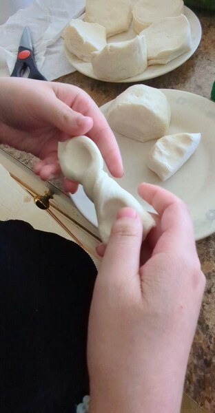 把比司吉麵糰一切為二,