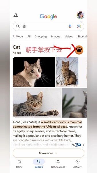 在 Google 搜尋cat (或貓)dog也可以,