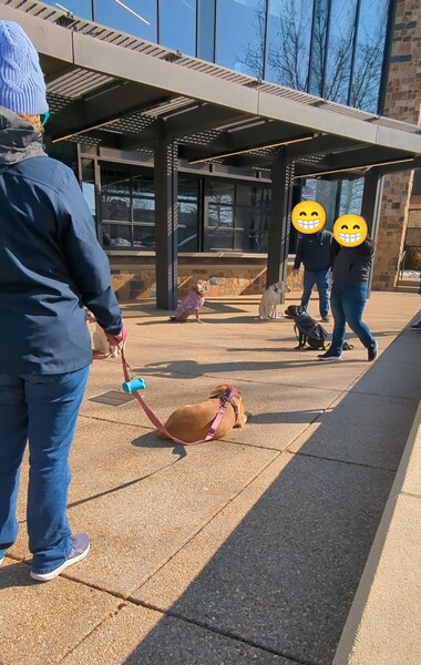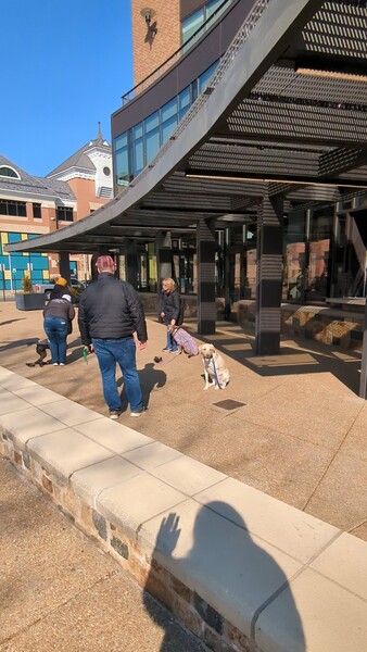 正好遇到圖書館外團體訓練狗!