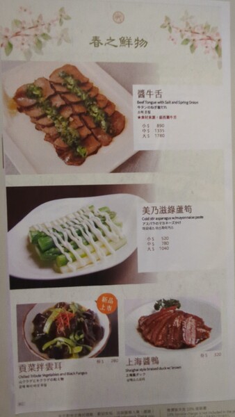 部份菜單