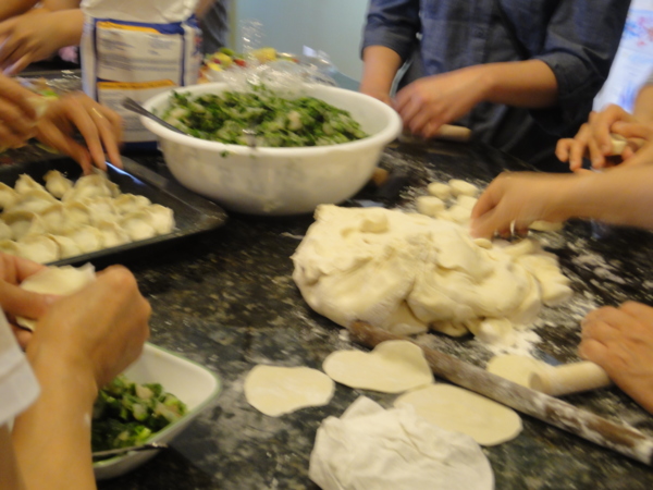 大家分工合作,有人做皮,有人包餡,有人煮!