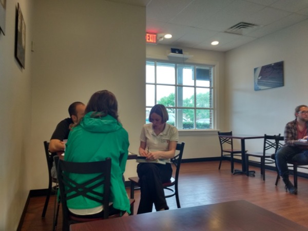 隔壁桌的這對情侶和店員正在討論訂做他們的結婚蛋糕!