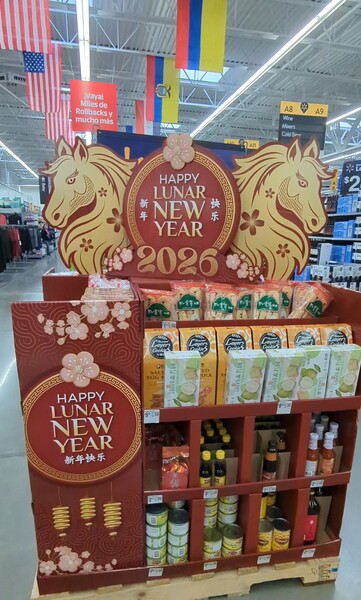 今年Walmart 超市 @Leesburg Virginia 馬年美食專區 中華麵、美乃滋、黑糖薑母茶 今年捲土再來 台灣來的芭樂梅方塊酥 老楊鹹方塊酥 楊協成豆浆(豆奶) 原來是馬來西亞來的(一...
