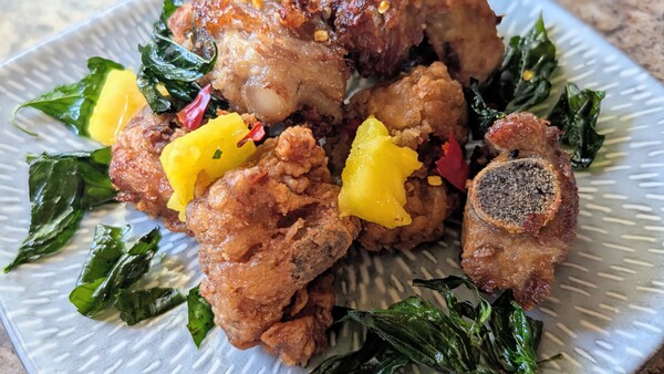 【食譜】鳳梨排骨酥 在好運來超市買了兩條金沙排骨 一條煮湯,一條做成排骨酥 順便把鳳梨殺一殺,就成鳳梨排骨酥 忘了家中地瓜粉用完了, 想說用樹薯粉來替一下, 没想到一下油鍋就糊了🥺🥺🥺🥺 失算...