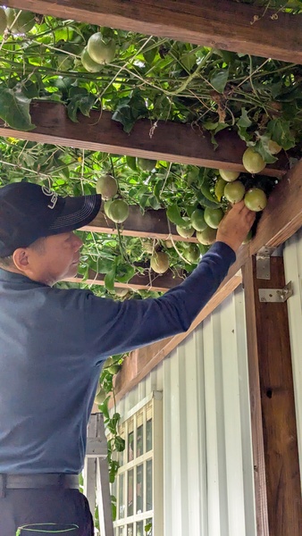 原來你素高手👍🏻👍🏼👍 別人種花種田 哥~你種兩棵百香果樹, 長得有模有樣 生了一堆百香果👍👍🏼👍🏻 好香好好粗😁😁😁 我喜歡你家的小黃狗 來哥的後花園影片,請按此
