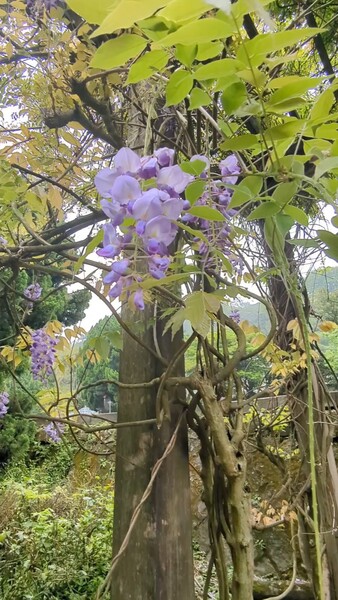 就在陽明山的公車總站旁 利用等公車之際 遇見美花都會瘋狂亂拍🤣🤣🤣 拍個路標 地圖 紫藤在美國没見過, 在台灣隨處可見! 紫藤花花語:沉醉的愛情 對愛情的執著(絕不離開)」與「懷舊」。 它象徵浪...