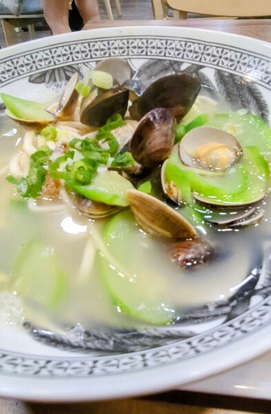 絲瓜蚌麵 @老董牛肉麵 位於桃園國際機場第二航廈A5登機門 我的登機門在D9 我從D散步到A 居然讓我看到絲瓜蚌麵 人生第一次吃 還真是没見過世面🤣😱😱😱 菜單 9號套餐😍😍😍 有賣珍奶...