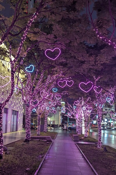 咋晚微風信義 Taipei Taiwan 天雨 微風 微涼 走在閃亮亮的粉紅愛心街 進入室內 花意空間(新光三越A8門市) Flower space 12, Songgao Rd, Taipei,...