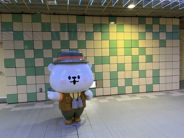 上上下下貼了很多磁磚的大坪林站,直覺是間大浴室,不過,說成走溫泉風,可能比較妥當。