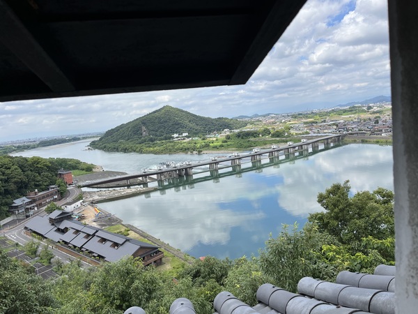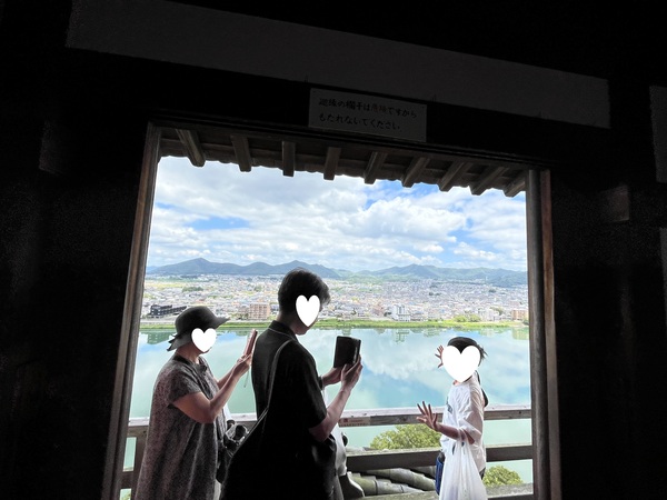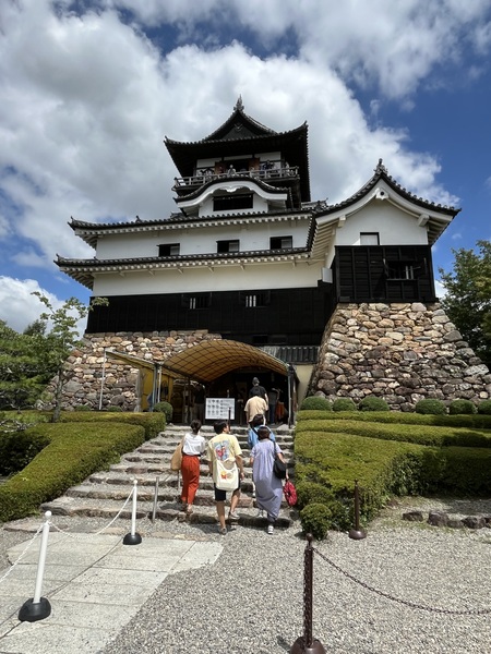 【犬山城】建於1537年,其天守閣是日本現存的天守閣中最古老的一座。要爬體感近八十五度的陡峭木樓梯往上,這跟那天在【彥根城】的體驗相當,最大的不同在頂層是望樓,可以在毫無遮蔽物的情況下眺望寬闊的木曾川和連綿的群山,是個很不一樣,有點刺激的體驗。