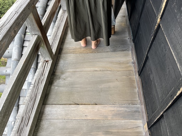 只穿襪子走在木地板上,本來就比較不穩,畢竟襪子的止滑效果必定不如鞋子,加上走道的寬度僅容一人,又加上位居高樓,推測這項體驗對懼高症的人應該不太適合。