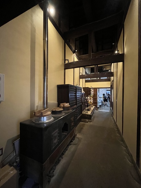 江戶時代就建造的木造建築,還能免費入內參觀,這種景點,即便是對建築還不是很感興趣的偽青年也不可能錯過啊!重點是,本來從外面看來以為只是參觀一個小小的,狹窄的空間,沒想到走進去後,裡頭是那樣的狹長,可看的東西如此多,廚房、浴室、土藏(倉庫)……,能在大熱天堅持住,真是太值得了。唯一可惜的是裡頭有個【投扇興】的體驗活動,因為語言隔閡而無法參與。