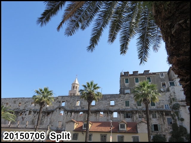 我們走在海濱大街上,一邊自然是海,另一邊除了棕櫚樹外,密布著露天咖啡酒吧的大陽傘,那戴克里先宮的外牆如果不是那麼高,應該是會被淹沒了吧!