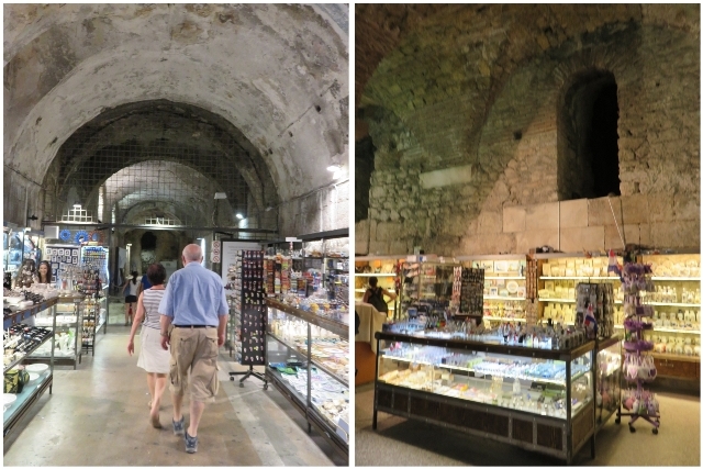 在疑惑中,我們跟著領隊的腳步從南邊的銅門進入。一走入後,雖是與港邊平行的地面樓,但卻從建築中感覺到是地下室,昏暗的室內擠滿了商家,這種感覺就像每回去到販賣雷同紀念品的老街一樣,感覺真的不怎麼好!