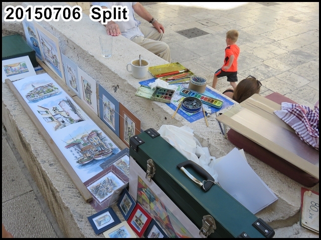 ㄜ~~,的確是陵寢沒錯,也就是大教堂所在的位置就是戴克里先皇帝的陵寢,七世紀時皇帝石棺及遺體被移走,改建為聖多米努斯St Domnius大教堂。所以啊!真的不能怪我在接下來的時間裡,比較在意的是那個畫家把咖啡和顏料擺一塊會不會不小心喝錯,還有那面看起來好像有點年紀的古牆究竟有幾歲了。