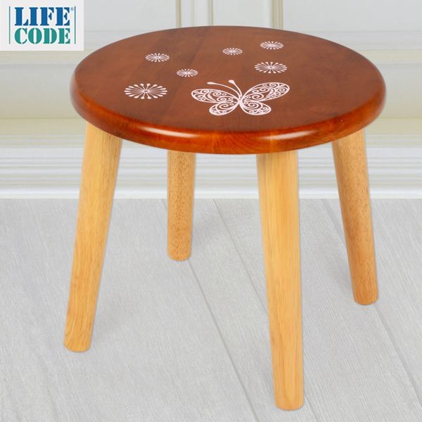 【LIFECODE】33cm實木可收納大圓凳-喜字/蝴蝶
