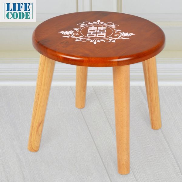 【LIFECODE】33cm實木可收納大圓凳-囍字/蝴蝶