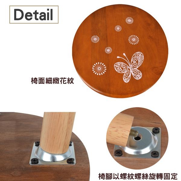 ◆ 椅腳椅面皆天然橡膠木實木製,椅腳實木質紋路,以螺紋螺絲旋轉固定若不使用時可拆下方便收納。