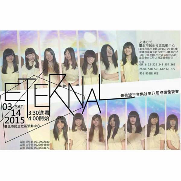 是我指導的景美女中流行音樂社的第八屆成果發表會ETERNAL,