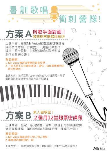【方案A-與歌手面對面!暑期周末歌唱訓練班】