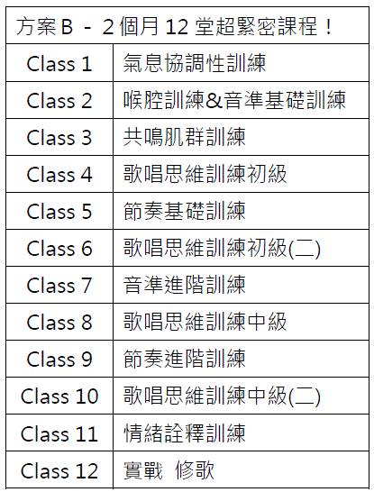 【方案B-素人變歌星!2個月12堂超緊密課程】