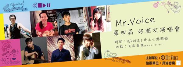 Mr. Voice每隔一陣子就會舉辦一場學生的成果發表會, 由每位老師推薦優秀學生上場演出, 屆時能邀請學生的親朋好友到場欣賞歌唱表演, 是相當難得又適合所有愛唱歌、愛音樂的朋友一起來共襄盛舉的盛會噢...