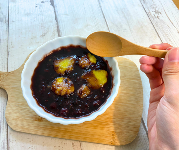 讓地瓜的甜味完全融入紫米湯裡
