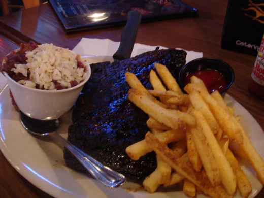 BBQ Ribs looks too dark, but taste fantastic. Dry rub with BBQ sauce on top.