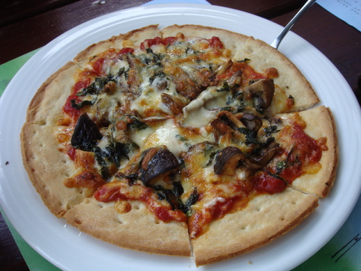 點了一份養生鍋, 一份蘑菰 pizza, 還有一份墨魚海鮮義大利麵, 不過那個義大利太好吃了, 還來不及拍照就被搶光了....., 是太餓了, 還是抵擋不住美食的誘惑?