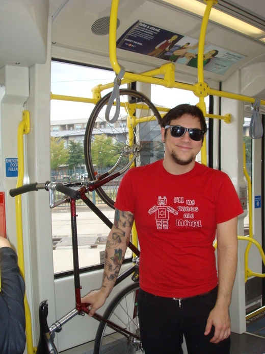 在電車上看到這個帥氣的哥哥很神氣的把腳踏車掛在電車上, 想偷偷的拍照, 看到他手上的刺青, 怕被揍的我還是乖乖的問他可不可以拍好了…….