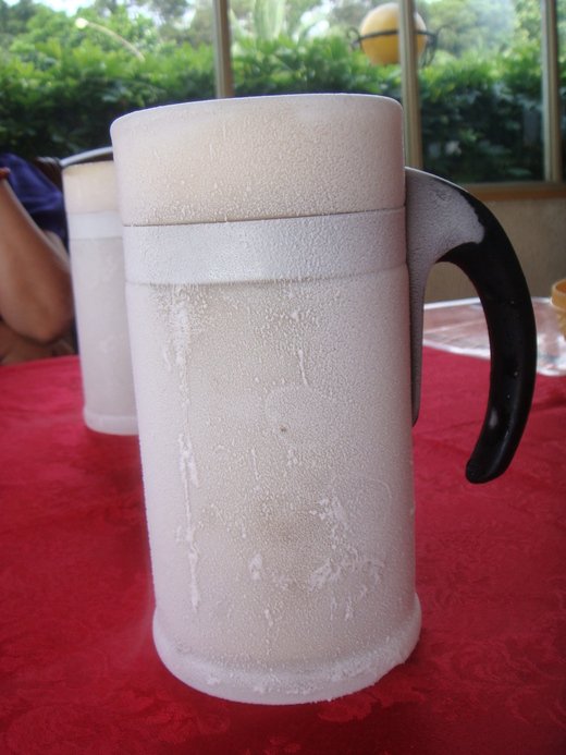 這一家在淡水的台式快炒店, 標榜冰凍成霜的啤酒, 當然要試試!