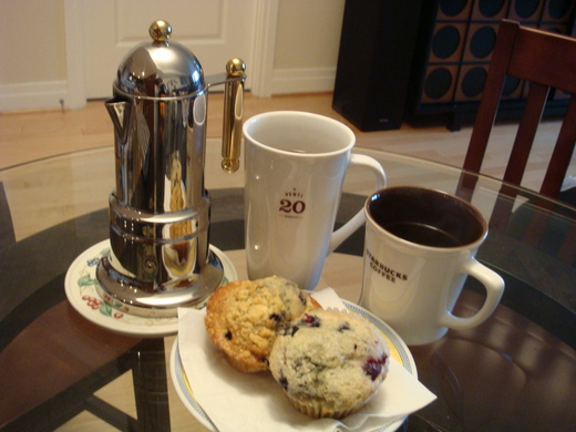 當然, 趕時間的時候就沒辦法這麼講究. 不過, 只要是周末, 在家吃早餐, 就算只有馬芬跟吐司, 也要來上一大杯現煮的美式咖啡!