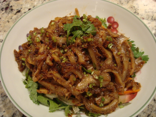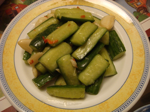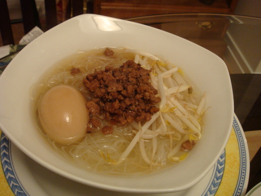 今天的晚餐看起來有點大雜匯, 有台式擔仔米粉, 有涼拌小黃瓜, 醬拌牛肚... 連餐具也都不一樣.....