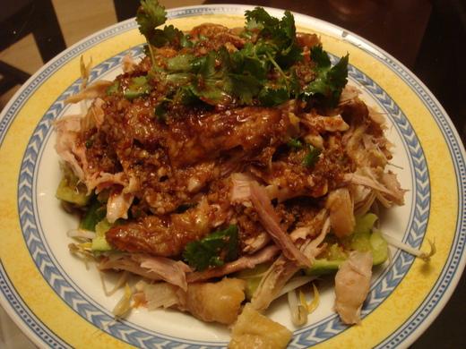 2> 擺上雞絲, 淋上攪拌均勻的醬汁,就是 home made 的美味燒雞!